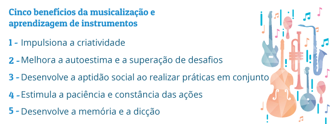 Criar novas sociabilidades, melhorar a coordenação motora e manter o foco em uma atividade são alguns dos benefícios da prática musical. O ensino musical durante a infância também contribui para o desenvolvimento cerebral tanto em atividades individuais quanto em grupo, a exemplo do coral.
