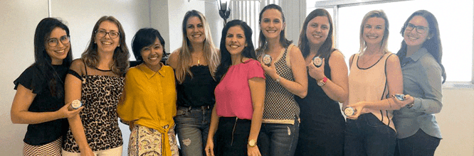 Servidoras do TRT17 confraternizando o Dia do Servidor Público com a ANAJUSTRA, na ação +Servidor.