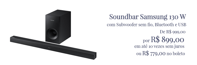 Com design compacto e sem fios, a Samsung lançou dois modelos de Soundbar: um com 130W e outro com 360W. Os dois modelos têm tecnologia Bluetooth que conecta a Soundbar à TV ou ao smartphone por meio do aplicativo Samsung Audio Remote, permitindo controlar as funções do aparelho sonoro e ouvir músicas.