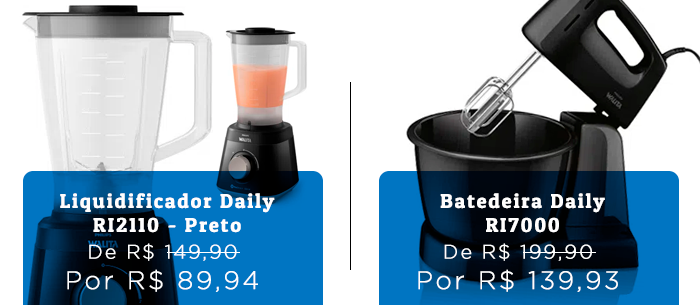 A loja virtual da Philips, parceira da ANAJUSTRA Federal, tem uma seleção de produtos com descontos que a chegam 45%, promoção válida até o dia 31/8. Você encontra liquidificadores, processadores, batedeiras, mixers, além de aparelhos de uso pessoal como escova de dente elétrica e aparadores de pelos.