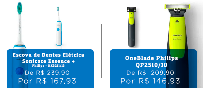 1 – Escova de Dentes Elétrica Sonicare Essence + Philips; 2 – OneBlade Philips QP2510/10.