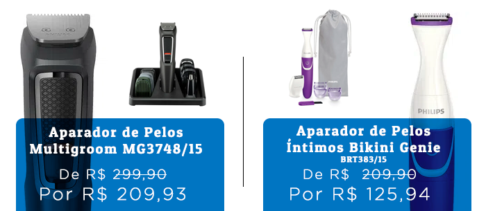 1 – Aparador de Pelos Multigroom MG3748/15; 2 – Aparador de Pelos Íntimos Bikini Genie BRT383/15.