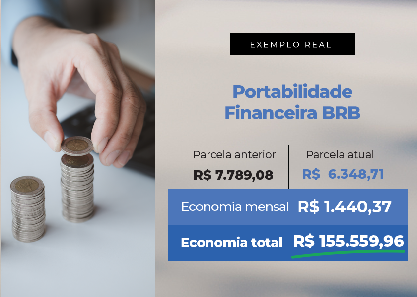 Com a Financeira BRB, milhares de servidores associados nos últimos anos fizeram a portabilidade de seus consignados e, com isso, economizaram expressivamente. Um deles, pagava R$ 7.789,08 de parcelas mensais, atualmente paga R$ 6.348,71. São R$ 1.440,37 de economia no mês e R$ 155.559,96 no total.