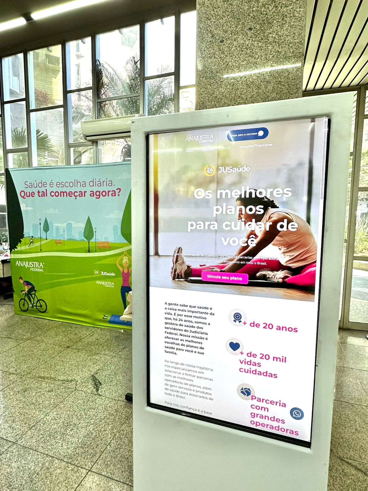 Quem visitou o estande da associação e da operadora contou com a tecnologia para simular valores dos planos. E ainda recebeu brindes. O associado ANAJUSTRA Federal Paulo Roberto Victor dos Anjos é servidor da Justiça do Trabalho há 28 anos. Ele participou dos atendimentos e fez a simulação do plano complementar com cobertura pelo hospital Mater Dei. Paulo afirmou que se trata de uma boa opção. “Vou analisar o orçamento e pensar na possibilidade de adesão”, disse.