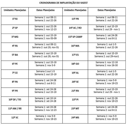 A instalação nos demais TRTs seguirá o seguinte cronograma: