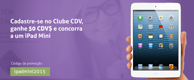 Para concorrer ao iPad, o associado deve acessar o site do Clube CDV ou a página da promoção e se cadastrar, informando no campo “Origem” a opção “Promoção” e o código “ipadmini2015”. Após o cadastro, o associado receberá um e-mail com número para participação no sorteio.