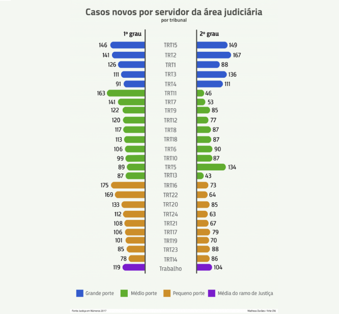 No TRT3, de Minas Gerais, segundo Dias, o Tribunal criou funções comissionadas para assistentes de juízes das varas do trabalho. A Associação dos Magistrados da Justiça do Trabalho (Amatra) 3 avaliou que houve “equalização total do número de servidores dentre os graus de jurisdição, conquistada gradualmente, bem como o respeito ao percentual máximo de servidores na área administrativa”.
