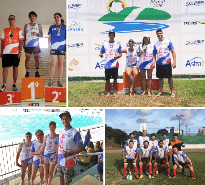 Servidores da Justiça Trabalhista de todo o país estiveram reunidos em Natal (RN), entre os dias 19 e 25/11, participando da XV Olimpíada Nacional da Justiça do Trabalho (ONJT). Apoiada pela ANAJUSTRA, a delegação de São Paulo, formada por 20 servidores, levou para casa quatro medalhas, sendo um ouro no ciclismo masculino e três bronzes, um no atletismo masculino (5.000m) e dois na natação feminina (50m clássico e 50m costas).