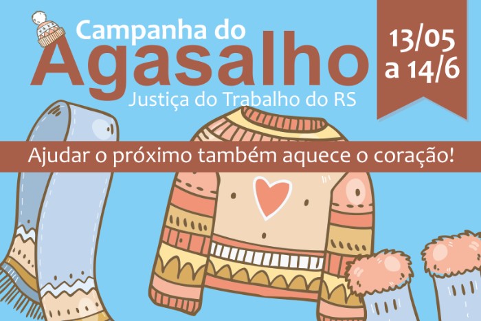 Com o tema “Ajudar o próximo também aquece o coração”, a Campanha do Agasalho 2019, do Tribunal Regional do Trabalho da 4ª Região (RS), tem início nesta segunda-feira, 13/5 e segue até o dia 14/6.