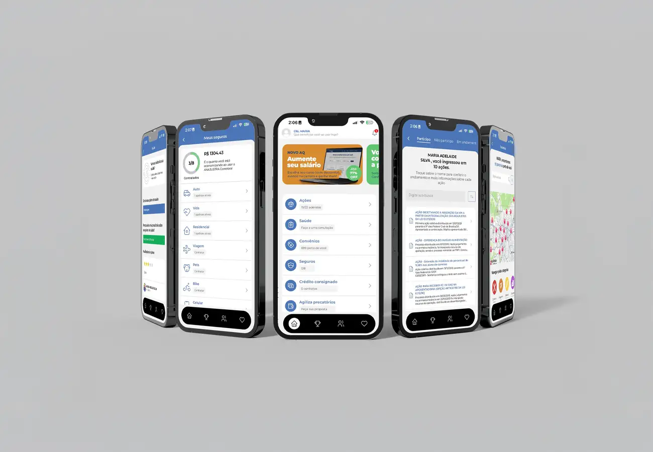 Página reúne convênios, ANAJUSTRA Corretora e soluções financeiras.