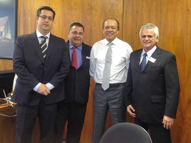 Da esquerda para a direita, o secretário-geral da ANAJUSTRA, Alexandre Saes, o diretor de relações institucionais, Áureo Pedroso, o DG do STF, Amarildo Vieira, e o assessor parlamentar, Roberto Bucar.