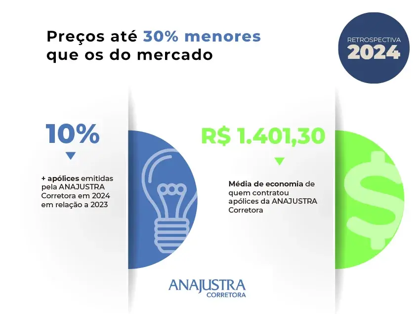 Quem contratou apólices da ANAJUSTRA Corretora, que tem preços até 30% menores que os do mercado, economizou, em média, R$ 1.401,30. Mas houve casos em que a economia foi superior a R$ 1.900,00, por exemplo.